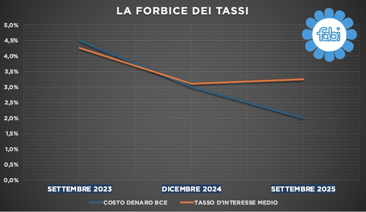 Analisi e ricerche Fabi: l’andamento degli interessi bancari sui prestiti immobiliari dal 2023 a oggi. L’evoluzione della forbice dei tassi: perché il differenziale si è invertito. La bassa remunerazione dei depositi: dimezzati in due anni i tassi sui conti correnti