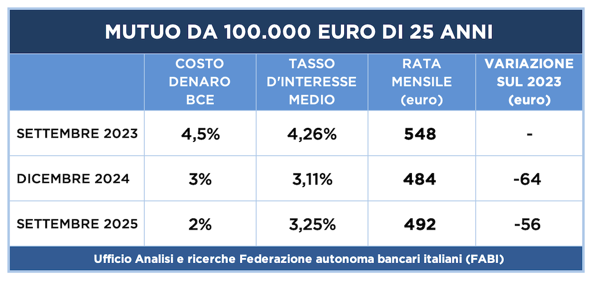 QUAL È LA RATA DI UN MUTUO DA 100.000 EURO DI 25 ANNI?